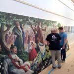 In-depth Interviews and Painting InstallationMembers of the parish staff, pastoral leadership team, our church renovation contractor, and other parishioners helped Father Anthony and artist Michael Corsini (in the blue shirt) install the completed painting on the back wall of the church. Click on the video below to see the painting being installed. The video includes an in-depth interview with the artist about the creation and meaning of the painting: |