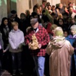 For nine evenings, starting on December 15th, we meet on the porch of the Old Mission San Jose Museum at 6:00pm and process to a local business or site within two blocks singing Christmas carols as we go. A family is selected to carry the hand-carved statue of Mary, Joseph and Baby Jesus. Once we arrive, we ask for room at the Inn. The host turns us away but eventually welcomes us in to take shelter.