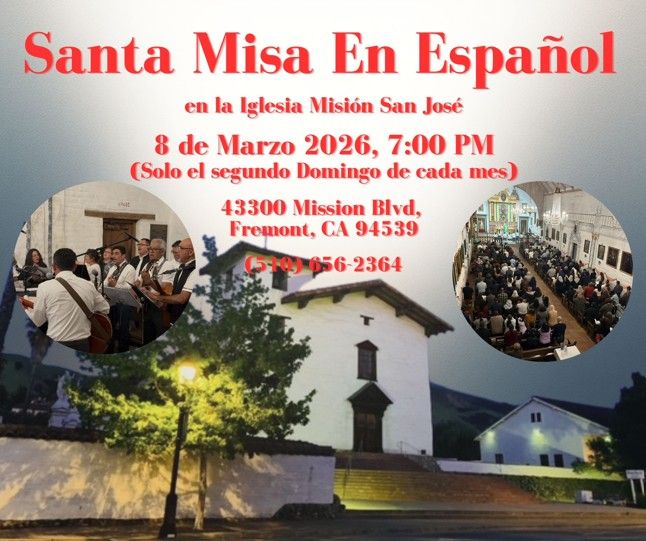 We now celebrate the Holy Sacrifice of the Mass in Spanish at the Mission San José Churchevery 2nd Sunday of the month at 7:00 PM.
